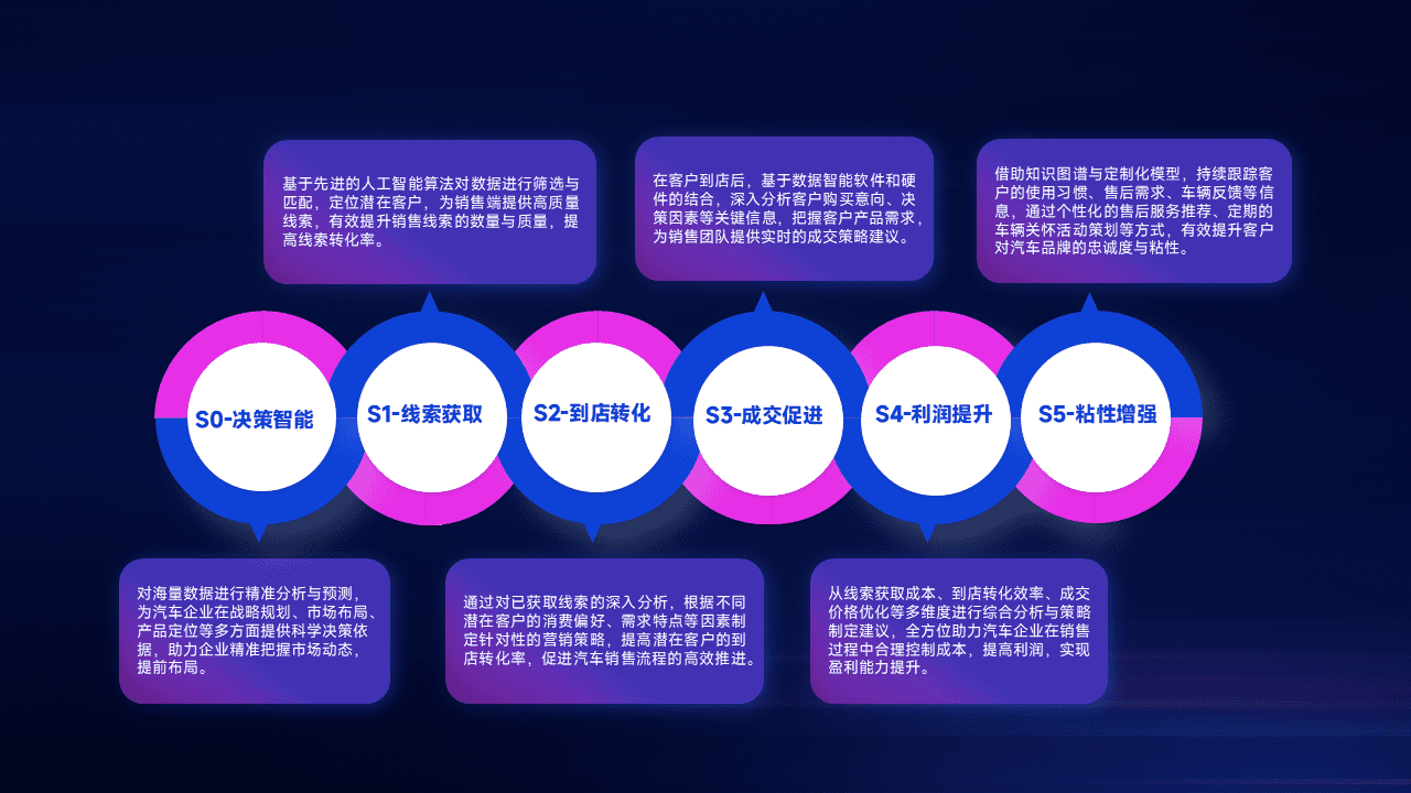 通过拓宽潜在客户来源、、、、优化线索分配并提高到店转化率,,,,以增强销售效率。。同时,,,利用线索数据不断优化分析模型,,,,有效提升转化率,,,扩大营销影响力。。。